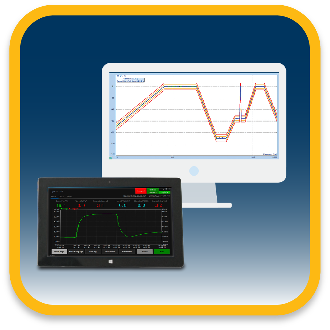 The EDM THV testing software synchronizes a chamber controller and any dedicated Crystal Instruments’ vibration test controller, which ranges from 2 to 512 channels. The two controllers can operate separately or in sync as one combined system controller to perform combined temperature, humidity, and vibration testing.
